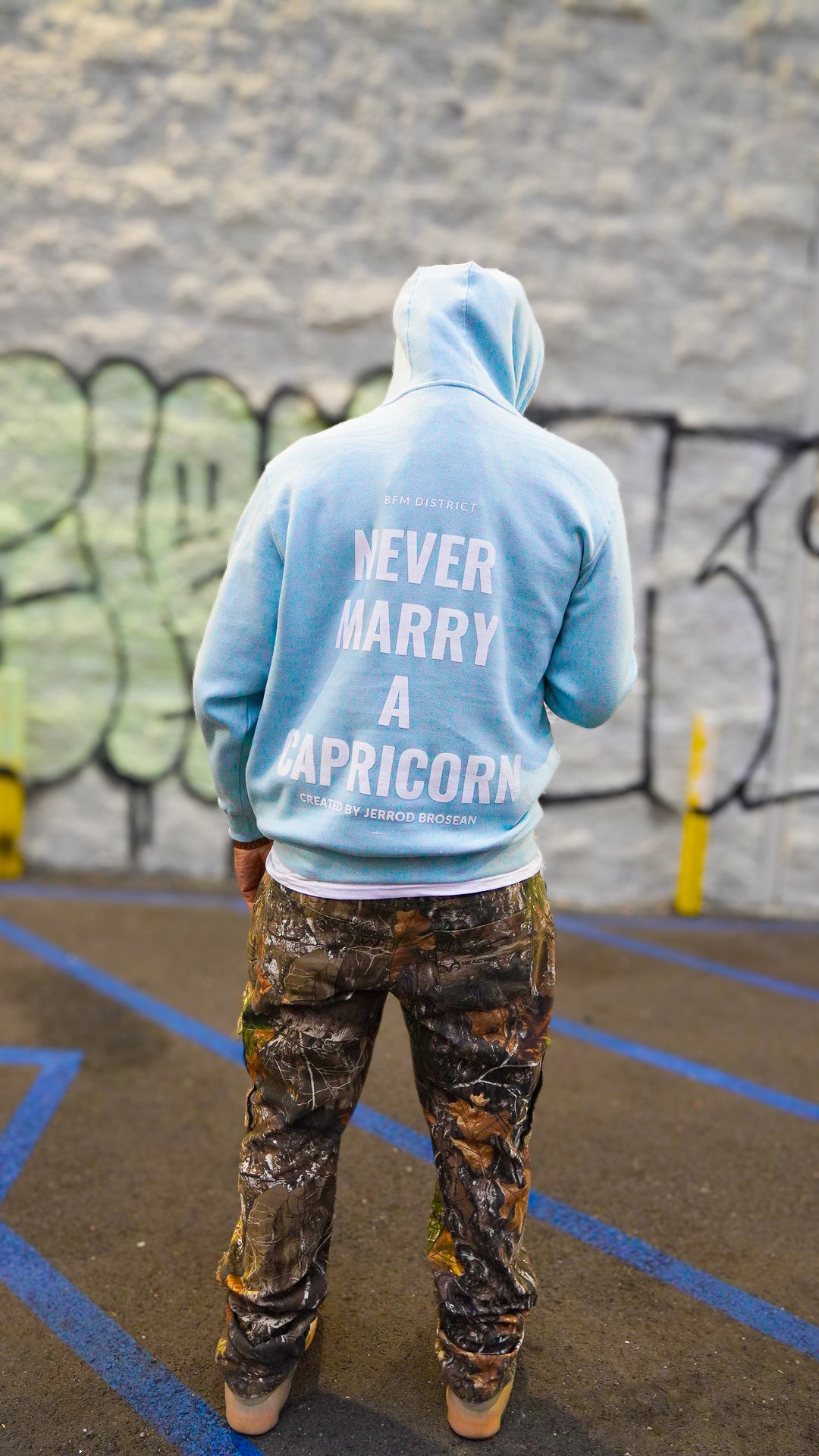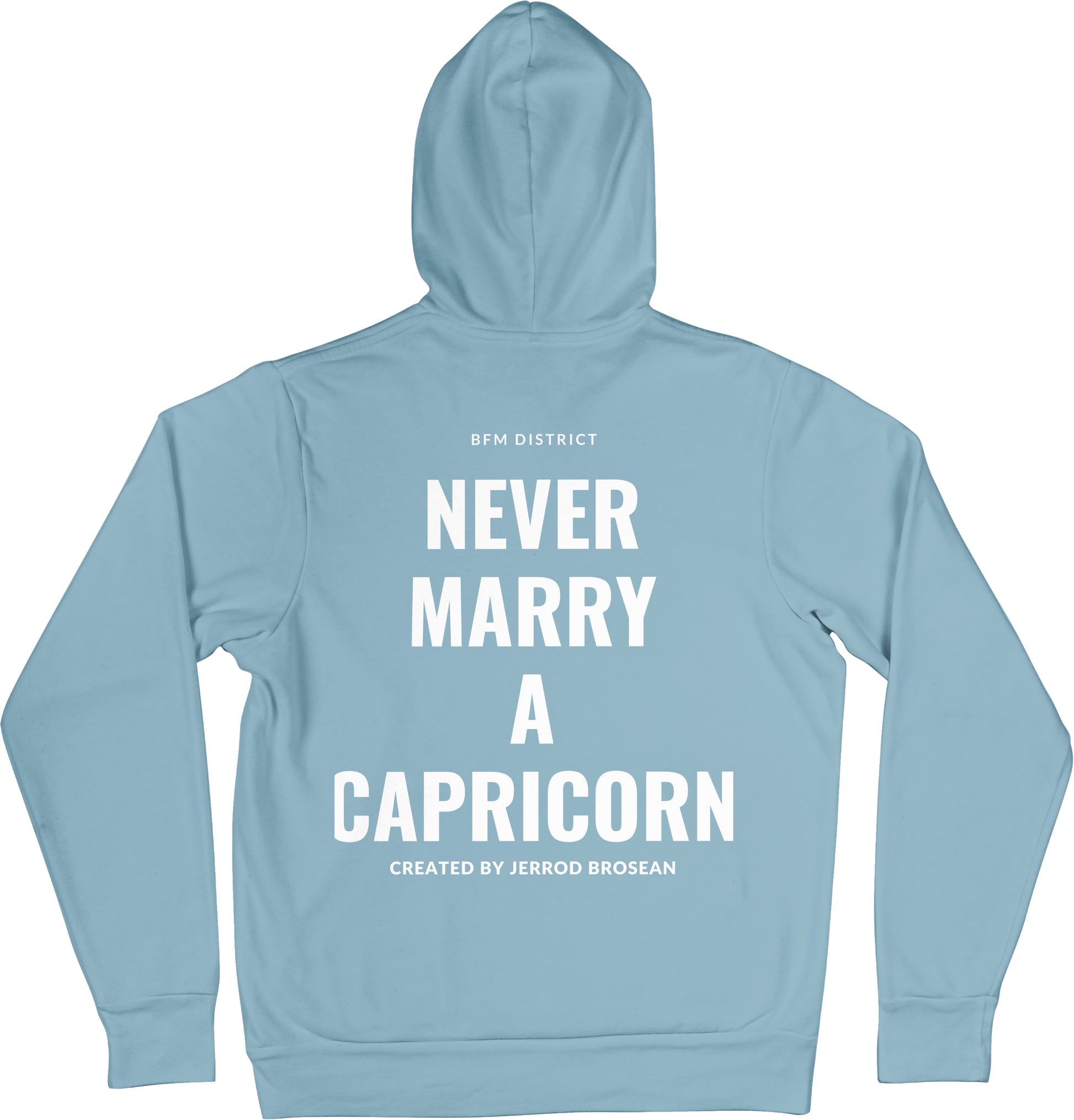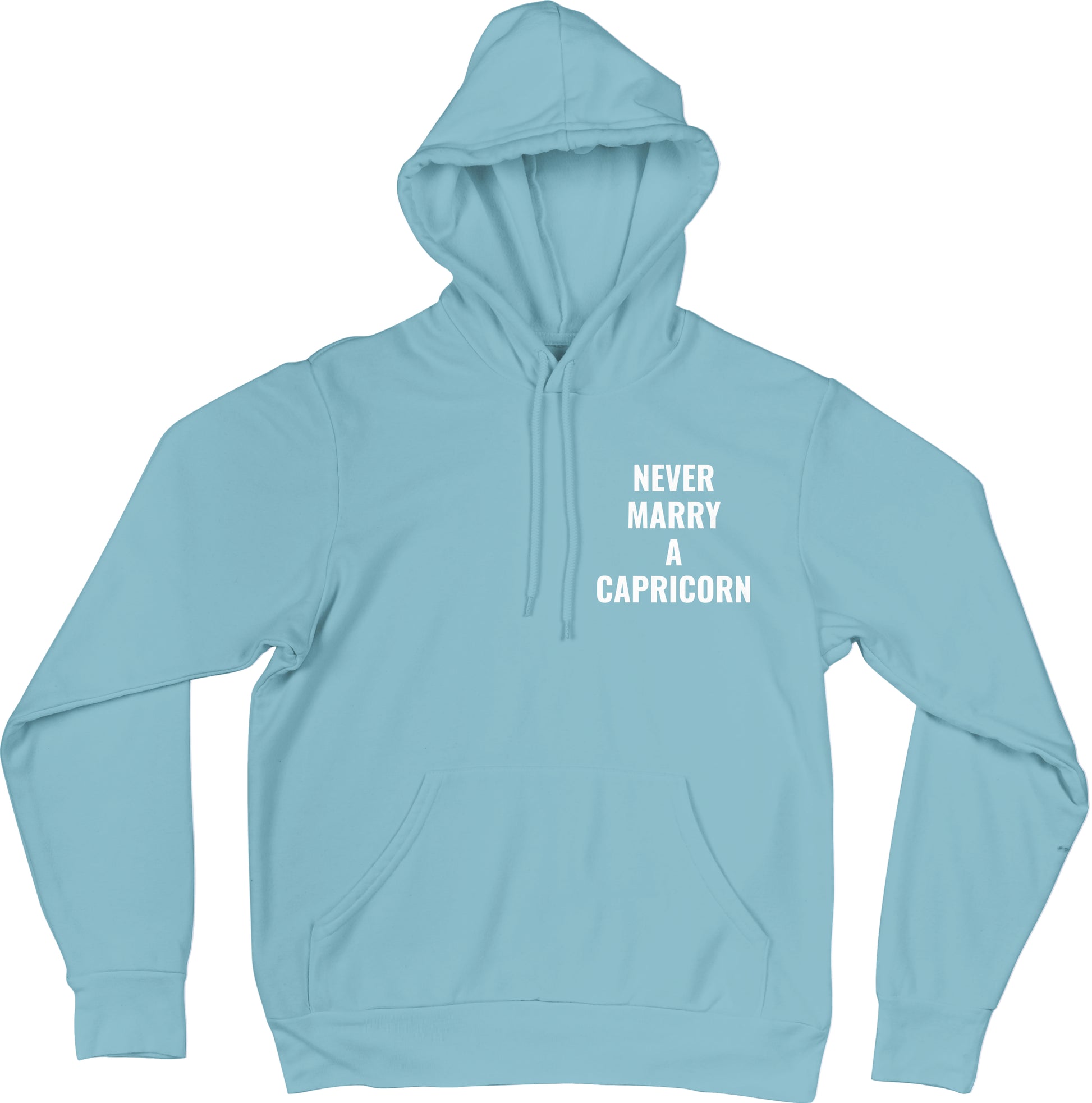 This stylish hoodie, inspired by Capricorn's birthstone, features "Never Marry A Capricorn" in bold white letters. Crafted from soft, cozy fabric with a design that sparkles with wit and zodiac pride, it’s perfect for astrology lovers who embrace the charm and mystery of Capricorns!